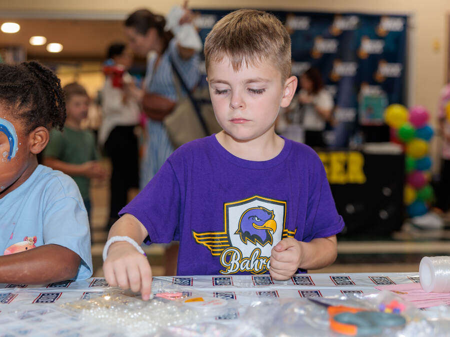 The USO set up craft and game stations where parents and children worked together to create friendship bracelets and play games. For many families, it was the first time they’d experienced the USO in this way — not in the airport or as a place for deployed service members, but as a space for families to connect and belong while living far from home.