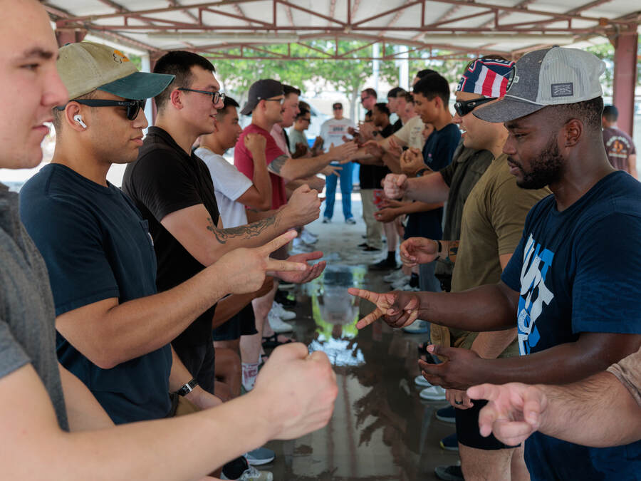 The USO team also supported deployed service members by delivering USO2GO kits, complete with games, snacks, and USO t-shirts. A spontaneous battle of rock-paper-scissors even drew a long line of Marines eager to join the fun.